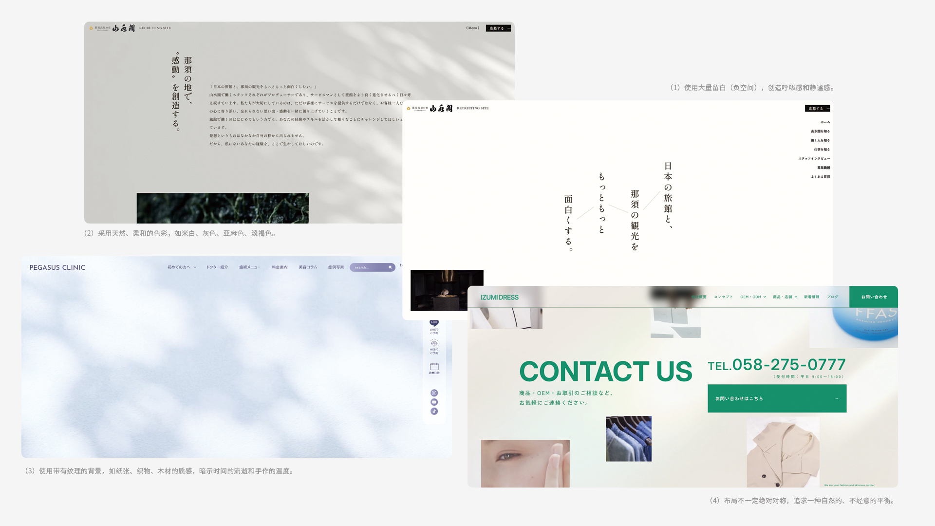 (1)使用大量留白(负空间),创造呼吸感和静谧感。
