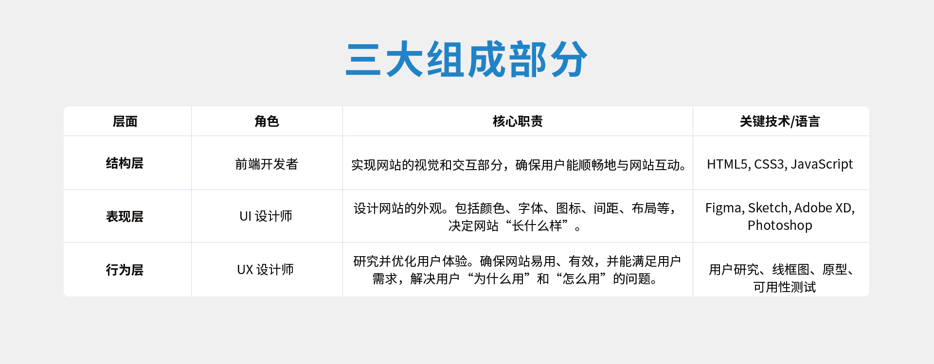 现代网页设计是一个多学科交叉的领域,通常分为三个层面: